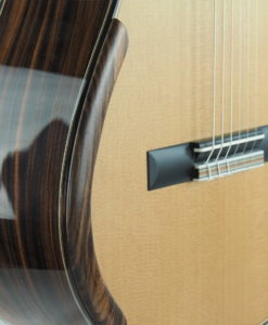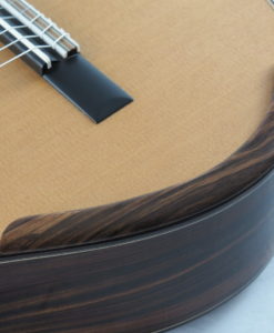 This guitar offers a great cedar top with a huge string separation, sparkling trebles and resounding depth across the lower registers. The sustain is incredibly long with very thick notes.