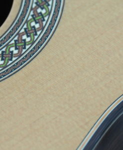Jim came to visit us and explained that all the developments of the Ana Vidovic lattice guitar have as an objective to move away from the usual lattice ‘artificial’ sound to a more natural sound but still with a huge dynamics. That is why his new lattice guitar is lighter with solid back and sides instead of laminated wood. The back is flat and not arched and the top is much thicker than on the average lattice Australian guitar. As a result, the guitar is more woody, more natural-sounding but still with a big voice. All this work took years to achieve.