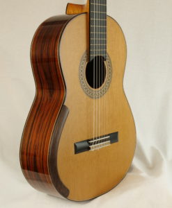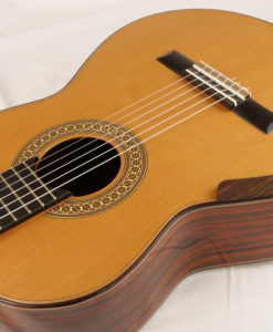 This guitar offers a great cedar top with a huge string separation, sparkling trebles and resounding depth across the lower registers. The sustain is incredibly long with very thick notes.