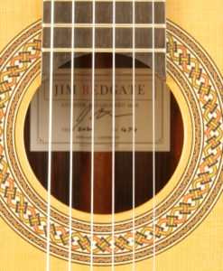 ‘Jim Redgate is an Australian classical guitar luthier, who owns Redgate Guitars. As from 2012, he has been making three models, the lattice-braced, the double-top, and the traditional fan braced. His customers include Pepe Romero, Ana Vidovic, Ralph Towner, Slava Grigoryan, Leonard Grigoryan, Jeff Young, Gareth Koch, Odair Assad, Wolfgang Muthspeil, Karen Schaupp, Hucky Eichelman, and Phillipe Mariotti.[1] One author said of him, « Like fellow Australian Greg Smallman, Redgate builds his (lattice braced) guitars to improve their volume and projection, and he uses lightweight carbon fiber reinforcements under the soundboard. While not as thin as a Smallman’s, Redgate’s soundboards are much lighter than traditionally braced examples, and his guitars are therefore more responsive, energy-efficient, and louder than traditional classical instruments’.