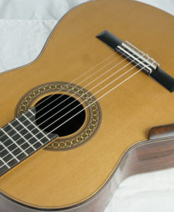 This guitar offers a great cedar top with a huge string separation, sparkling trebles and resounding depth across the lower registers. The sustain is incredibly long with very thick notes.