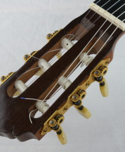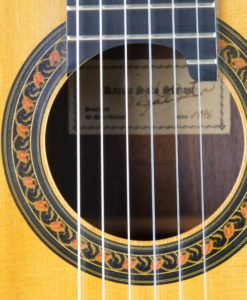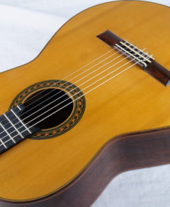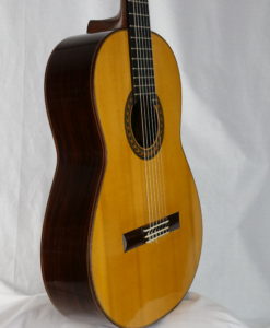 This Prestige guitar from M. Sato reminded us the latest Daniel Friederich from 1989 that we had for sale : same dynamic, same wonderful tone color but with maybe thicker notes , full and soft specific color of sprucetop. The sound is elegant and beautiful, the spruce top brings a lot to the string separation, even is the guitar is clear all the note remains soft with deep basses which are round and loud.
