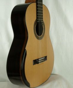 This guitar also features 650 scale ebony fingerboard with extra 21st high C fret, Gilbert tuners, lattice braced cedar top and Hiscox flight case.