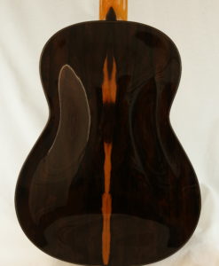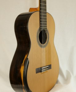 I have developed my own designs based on the ‘Australian School’ of guitar making. The guitar I have to offer you is a lattice-braced, arched back classical guitar, which has superb projection, clarity and sustain. Combining a full and rich tone, with bright trebles and warm basses.