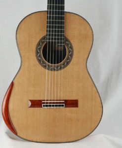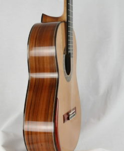 Here we have a lattice braced guitar inspired by the Greg Smallman guitars. Everything has been said on the Greg Smallman sound, this lattice model of Charalampos sounds to us even better. You will find singing warm trebles, very thick notes with a long sustain and as well deep basses more natural sounding than the one you can find on the Greg Smallman guitars. Charalampos has worked in th direction of a more natural sound. The result is amazing.
