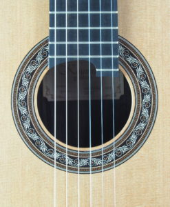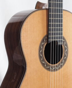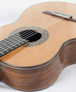 Here we have a lattice braced guitar inspired by the Greg Smallman guitars. Everything has been said on the Greg Smallman sound, this lattice model of Charalampos sounds to us even better. You will find singing warm trebles, very thick notes with a long sustain and as well deep basses more natural sounding than the one you can find on the Greg Smallman guitars. Charalampos has worked in th direction of a more natural sound. The result is amazing.