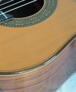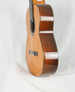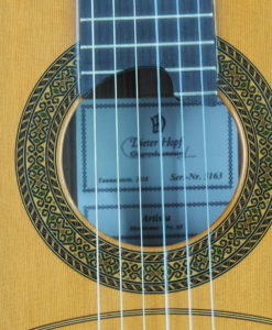Dieter Hopf offers a full range of classical guitars including top concert guitars. The Artista Membrane is the entry model of Dieter Hopf concert guitar. The guitar offers most of a good concert guitar could provide at the price of 4500€. Just the price is lowered, the lutherie remains high class and the sound is huge and beautiful. The model has been developed by Dieter Hopf and Manuel Adalid. Both luthiers are offering in their catalogues the same model. We have compared and prefered the German lutherie. Listen carefully to the video review and you won’t be disappointed. A great guitar for a reasonable price!