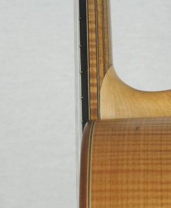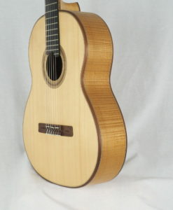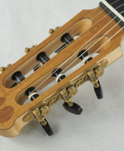 So the guitar Auditorium includes a lattice bracing with a spruce top, awesome solid maple back and side, a specially-developed bridge with some sound holes. The neck has some inlays of black wood which give to the guitar a particular esthetic. The polish used is a mat polish which gives the guitar a very modern blonde look which is quite far from the ‘old spanish’ look of the Portentosa