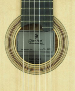 Dieter Hopf offers a full range of classical guitars including top concert guitars. There are 4 master luthiers dedicated to the concert guitars production and M. Dieter Hopf is mostly in charge of fine-tuning the new models and the research and development. The Auditorium model is one of the latest model developed by Dieter Hopf. The target was to make a modern concert version version with non-cites-listed wood of the lattice Portentosa Evolucion or Grande Furioso which could be as well more affordable.