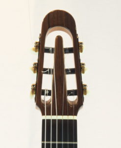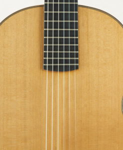 As you know, the innovations are key for us and more than welcome when it comes to our precious instruments. That is why we have been very curious to carefully listen to Gerard Audirac guitars. Gerard Audirac – who had been as well followed by Bastien Burlot another French luthier – is one of the rare luthier who questioned the anatomy of the guitar to improve her performances. He mostly focused on the top and finally create – first innovation – a guitar top without any sound hole. The sound-hole is moved to the upper side – second innovation. The objectif is of course to increase the top vibration surface and in the same time to provide to the player a better feedback of his playing.