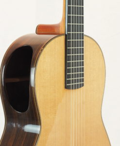Gérard Audirac is an innovative French luthier who developped for 30 years ago a concept of concert guitar without any opening on the top. We agreed to take this guitar on consignment with curiosity and are happy to present this 2009 concert model guitar which is close to perfect condition. A great opportunity and a great surprise : long sustain, clarity, with all the notes being very homogeneous all over the neck.