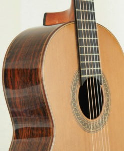 This guitar offers a great cedar top with a huge string separation, sparkling trebles and resounding depth across the lower registers. The sustain is incredibly long with very thick notes.