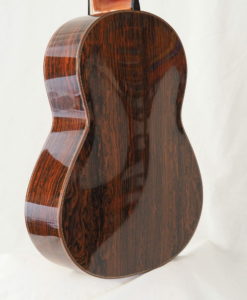 ‘Jim Redgate is an Australian classical guitar luthier, who owns Redgate Guitars. As from 2012, he has been making four models, the lattice-braced, the double-top, and the new wave double-top and traditional fan braced. His customers include Pepe Romero, Ana Vidovic, Ralph Towner, Slava Grigoryan, Leonard Grigoryan, Bertrand Thomas, Jeff Young, Gareth Koch, Odair Assad, Wolfgang Muthspeil, Karen Schaupp, Emmanuel Rossfelder, Hucky Eichelman, and Phillipe Mariotti.[1] One author said of him, « Like fellow Australian Greg Smallman, Redgate builds his (lattice braced) guitars with an arched back to improve their volume and projection, and he uses lightweight carbon fibre reinforcements under the soundboard. While not as thin as a Smallman’s, Redgate’s soundboards are much lighter than traditionally braced examples, and his guitars are therefore more responsive, energy efficient, and louder than traditional classical instruments’.