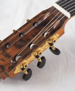 Receiving a new classical guitar from the luthier John Price is always a great moment for us. His guitars are so good that everythime it seems to us that the new one is better than the former ones. This No 387 is just as good as the other ones but what a guitar ! the Myrtle wood used for the back and sides is amazing.