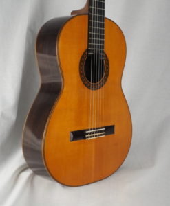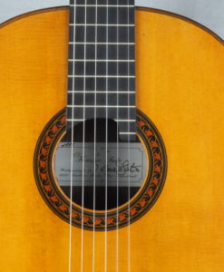 This Prestige guitar from M. Sato reminded us the latest Daniel Friederich from 1989 that we had for sale : same dynamic, same wonderful tone color but with maybe thicker notes , full and soft specific color of sprucetop. The sound is elegant and beautiful, the spruce top brings a lot to the string separation, even is the guitar is clear all the note remains soft with deep basses which are round and loud.