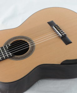 This guitar also features 650 scale ebony fingerboard with extra 21st high C fret, Gilbert tuners, lattice braced cedar top and Hiscox flight case.