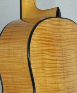 This Deluxe model with a spruce top and maple back and sides offers superb projection, warmness and sustain, combined with a rich, full tone. the Kim Lissarrague concert guitars are competing with the best guitars.The high notes are creamy and singing, while the bass notes are rounded and powerful, giving a “cello” impression. Certainly the closest to perfection !