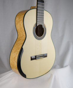 This Deluxe model with a spruce top and maple back and sides offers superb projection, warmness, and sustain, combined with a rich, full tone. the Kim Lissarrague concert guitars are competing with the best guitars. The high notes are creamy and singing, while the bass notes are rounded and powerful, giving a “cello” impression. Certainly the closest to perfection!
