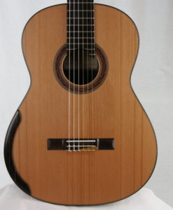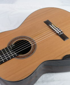 This guitar also features 650 scale ebony fingerboard with extra 21st high C fret, Gilbert tuners, lattice braced cedar top and Hiscox flight case.