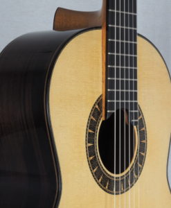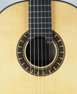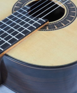Martin Blackwell do not produce double-tops but wonderful classical guitars which happen to be double-tops. When we first contact Martin, here is what he said on this classical guitar making : “my philosophy is to use the double-top technology to basically make a really great traditional sounding guitar. A classical guitar with a more powerful sound, more resonance, more presence. A more complete classical guitar which is a full concert guitar but which also has the subtlety to sound great in the living room as well. I don’t want to get away from the beauty of the traditional tonality. Because of this I know there are other double-tops and lattice classical guitars which are louder than what I am building. The best response which I get consistently from good players is that the guitar just sounds like a really good classical guitar and not necessarily a double top.”