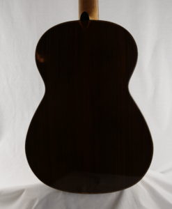 Philipp Neumann is a young German guitar maker originally based in Leipzig, Germany. He worked with many luthiers such as Stephan Schlemper and created his guitar workshop in 2004. He now lives in Belgium. This guitar is traditional-built but with a strong innovation on the top. He made a lot of research and finally decided to stiffen his top by adding 4 cedar inlaid bars in the back of the top to reinforce it and increase loudness. The top is much stronger but not heavier. The bracing is traditional. As a result, the guitar is loud and balanced with a rather clear color sound which is balanced but the use of cedar.