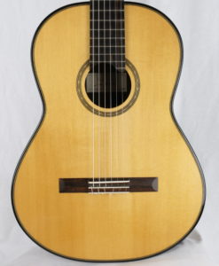 Tino Battiston is a French luthier based in the East of France. He worked with the master Kazuo Sato. His guitars is traditionally build with a solid Ziricote back and sides and a wonderful spruce top. The top is quite thin which gives the guitar a strong dynamic – the sound is like a small blast. The tone color is very traditional. The Spruce top brings to the guitar an amazing string separation. The guitar is from 2019 and in close to new condition.