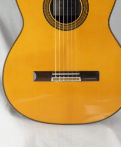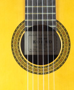 Even if Masaru Kohno was very much inspired by the Spanish school, one cannot say that the sound of his classical guitar could be comparable to a Ramirez for instance. What characterizes this guitar is the good projection and the nice string separation. The trebles are clear as one could expect with a spruce top guitar. The 66cm string length requires some time to get used to it. A nice guitar which will surely make the buyer happy.