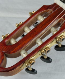 Once again, here is an eye-catching Cedar top Doubletop guitar from Max. The guitar is not only gorgeous looking but sounds like a dream. Here is as usual a cedar DT which is very different from the usual German DT guitars. The guitar is very light, with a top made of 2 slices of cedar/spruce (not 3 slices as on the regular DT). For the back and sides, Max took an attractive set of Paduk and cocobolo Rosewood. The sound is big and the playability is amazing. You should have a look to the review video.