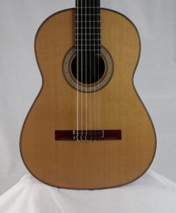 That is an Exclusive model with a wonderful Ziricote for the back and sides. What differentiates the Exclusive model from the Professional: the best woods, O’Leary Scheller tuners, and French polish for the top. Most importantly the sound is wonderful.