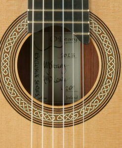 “There are differences in exterior/interior wood choices for the customer, tuners, finishing and most importantly the top. The Exclusive Series guitars have the very best of everything in every way. The top is the most important element and we handpick from the very best in the world. Although both Exclusive and Professional Series models have master grade tops, within this category, there is a variation in quality. Out of about 100 tops, we will find one unique quality top that has better grain structure, strength, aesthetic and sound response than the others. This is an Exclusive Series top and we keep it aside for these guitars. It will produce a superior instrument. As you know guitars can have a mind of their own and there are exceptions to this rule. The top is French polished on the Exclusive as opposed to the Professional Series which is lacquered (a very thin coat of matt lacquer). That is for most customers but not the case for your orders – we French polish for you. This is considerably more time-consuming as you know and contributes handsomely to the sound production. The back and sides are finished in the same way on both. To the keen listener, there is a noticeable sound difference between the models with respect to projection and sustain. Indeed the top is responsible for the playability too so the Exclusive Series tends to be more responsive for the player.”