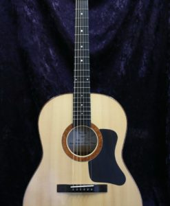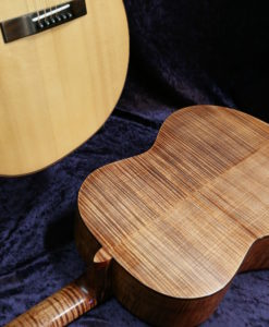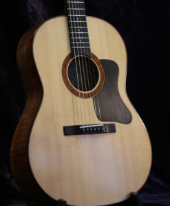 Here is once again a steel-string guitar from one of our best French luthier: Regis Sala. Régis makes wonderful ‘French style’ lattice braced concert guitar called Australe Model. But he makes as well amazing steel-string guitars using his classical guitar innovations. Here is a small size vintage version of an OO model but with a very modern bracing using lattice and carbon.