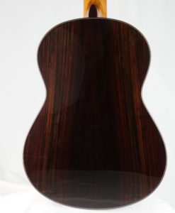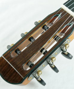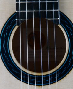 Rinaldo Vacca’s guitars are using a torrified spruce top from Val Di Fiemme. The bracing is a lattice braced in cedar with no balsa no carbon just wood. The body is doubled with maple and uses Madagascar rosewood for the outside. The neck is in Mahogani Kaya and the fingerboard is in Blackwood teck.