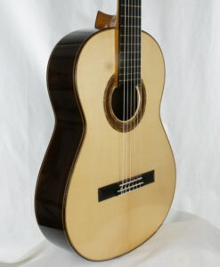 Here are some verbatim from Ryosuke : “I was learning structural mechanics at a university but I left it for some reasons. And I started to learn guitar making. After 7 years training including 2 years apprenticeship program under Sergei de Jonge and 3 years apprenticeship program under Kenji Sugita(http://www.sugitakenji.com), I started my own business in 2014. Now I’m making about 12 guitars a year for not only for Classical guitarist but also for Brazilian music musicians, Jazz musicians, steel strings players.”
