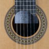 When we received Saeid’s guitar, we have been stuck with the wood quality used for both the back and sides and the top. The Indian rosewood is very figured and really looks like a Madagascar rosewood. The cedar top is thin and one can see the balsa bracing depending on the light. The guitar is light as most of the double-top. The rosette is I guess inspired by the Cordoba architecture and is wonderful.