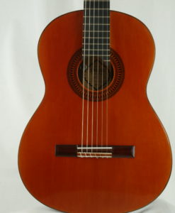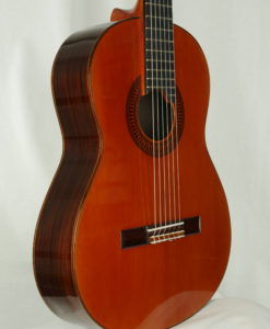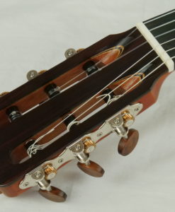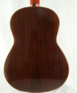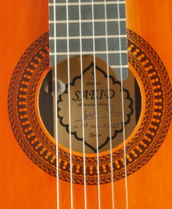 When we received Saeid’s guitar, we were stuck with the wood quality used for both the back and sides and the top. The Indian rosewood is very figured and really looks like a Madagascar rosewood. The cedar top is thin and one can see the balsa bracing depending on the light. The guitar is lighter than most of double-tops. The rosette is inspired by the Cordoba architecture and is wonderful.