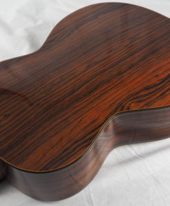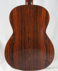 Simon has developed the radial bracing concept. His tops are not as thin as with the usual Australian guitars. This thickness gives the sound a woody natural sound which is producing a lot of overtones. The notes are clear but also plain and creamy with a very long sustain.