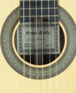 Simon Marty guitars are among the very best. It has a big sound and wonderful tones with a huge string separation and crystal-clear trebles. The playability is great. The different types of wood used are wonderful.