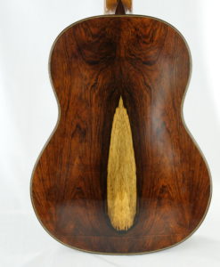 My goal when building guitars is to achieve the rich harmonic pallet and even tones of traditional method of spruce bracing classical guitars while offering an enhanced loudness, uncommon for small body most instruments.’