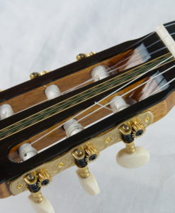 The first impression when playing the guitar is the immediate direct response. The guitar is super light and it is a real pleasure to feel the sound jumping of the guitar. Then the crystal tone color of the trebles supported by solid overtones. Valentim chooses only first-class material and he is following the wood thickness, bracing designs, material choices, wood grains, and vibration patterns of the original Hauser.