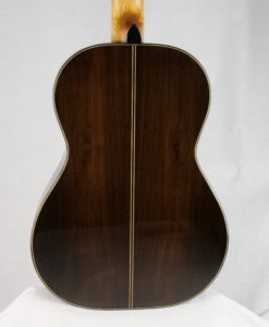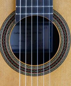 Valentim Carlos Gomes is a very Brazilian luthier making Daniel Friederich and Herman Hauser replicas. Here is an amazing Herman Hauser replica which is surely one of the sweetest traditional guitars that we ever played. The guitar is super light and offers crystalline and pure trebles supported by direct and spontaneous basses which are pretty deep. As a result, the guitar is sweet with a great balance between the basses and the trebles, the sustain is amazing and the overall sound is clear and deep. There is something magic in the sound and we have to thank Valentim to be able to recreate that magical sound.