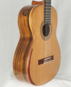 - Back and sides are in Brazilian Santos (outer layer) and African Mahogany (inner layer)