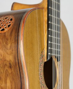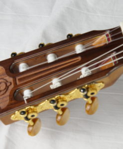 This number 174 is louder than the former guitar from Vasilis but most importantly warmer! Mostly because Vasilisa is now using Nomex for the inner core of his top. Vasilis Vasileiadis double-top guitars are pieces of art, magnificent with a craftsmanship that could compete with the best master of the ’60s and 70’s Spanish school. But that is not the important thing: what is amazing is the sound quality. The tone is traditional but with the DT dynamic. The playability is fabulous!