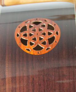 - Back and sides are in Indian rosewood (outer layer) and African Mahogany (inner layer)