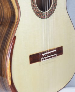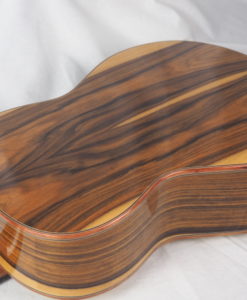 - Back and sides are in Brazilian Santos (outer layer) and African Mahogany (inner layer)