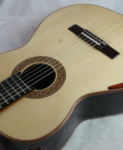 This number 182 is louder than the former guitar from Vasilis but most importantly warmer! Mostly because Vasilisa is now using Nomex for the inner core of his top. Vasilis Vasileiadis double-top guitars are pieces of art, magnificent with a craftsmanship that could compete with the best master of the ’60s and 70’s Spanish school. But that is not the important thing: what is amazing is the sound quality. The tone is traditional but with the DT dynamic. The playability is fabulous!