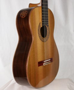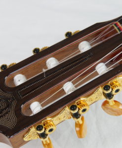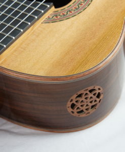This number 186 is louder than the former 2021 guitar from Vasilis but most importantly warmer! Mostly because Vasilisa is now using Nomex for the inner core of his top. Vasilis Vasileiadis double-top guitars are pieces of art, magnificent with a craftsmanship that could compete with the best master of the ’60s and 70’s Spanish school. But that is not the important thing: what is amazing is the sound quality. The tone is traditional but with the DT dynamic. The playability is fabulous!