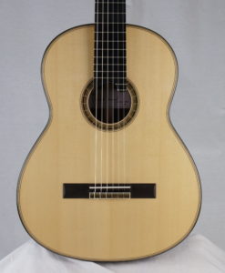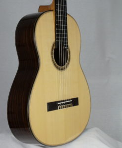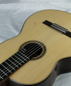 Here is the new double-top No 45 from 2022 from Vincent Humml, which is very similar to the No 35 we had last year (Vincent used some wood coming from the same trees). Like the last one, this guitar is one step ahead of the original double-tops made in Germany by Gernot Wagner and Matthias Dammann in the ’80s. The sound is pure, loud, very thick, and elegant. The guitar produces a three-dimension sound which is amazing. Have a look at the video review, you will be surprised..